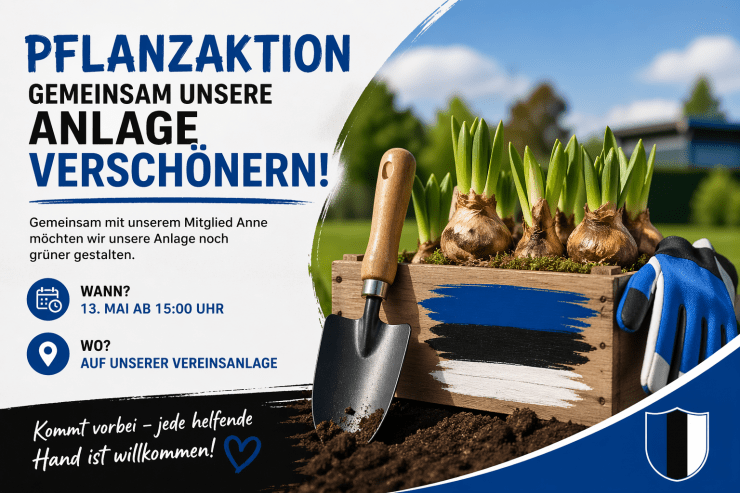 Gemeinsam mit unserem Mitglied Anne möchten wir unsere Vereinsanlage noch grüner und schöner gestalten. Deshalb laden wir alle Mitglieder herzlich zu unserer gemeinsamen Pflanzaktion ein.